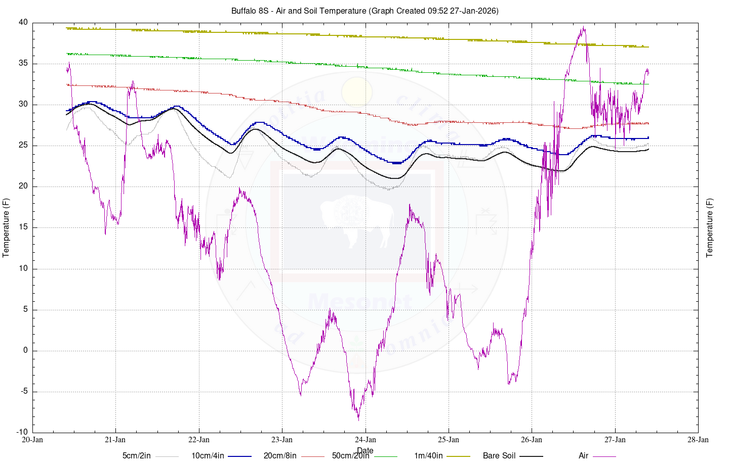 | Date Time (MST) | (F) | (in) | (mph) | (deg) | (mph) | (deg) | (%) | (Mbars) | (w/m^2) | (in) | 5cm | 10cm | 20cm | 50cm | 1m | 5cm | 10cm | 20cm | 50cm | 1m |