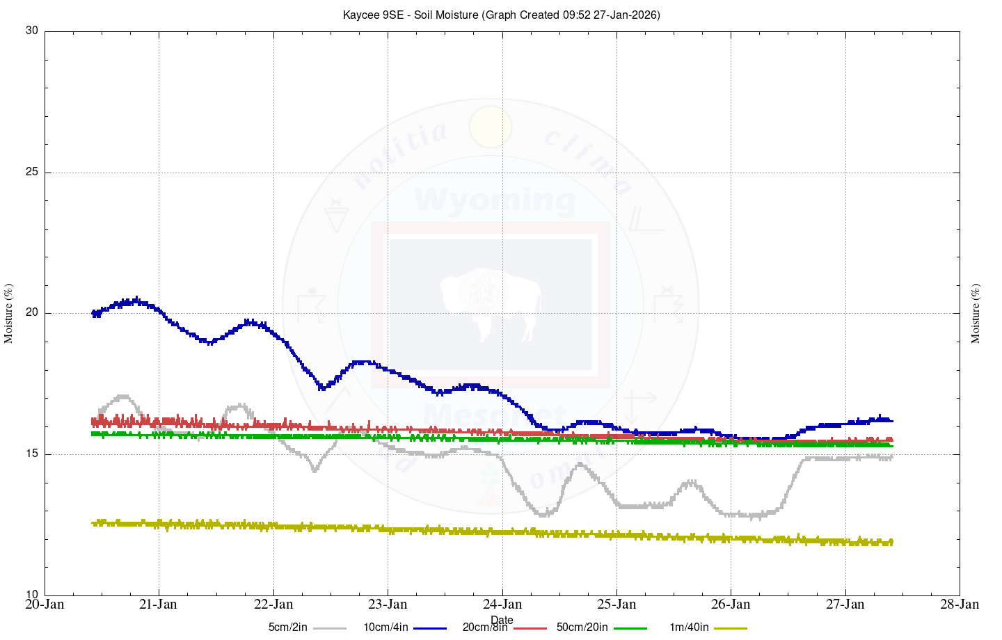 | Date Time (MST) | (F) | (in) | (mph) | (deg) | (mph) | (deg) | (%) | (Mbars) | (w/m^2) | (in) | 5cm | 10cm | 20cm | 50cm | 1m | 5cm | 10cm | 20cm | 50cm | 1m |