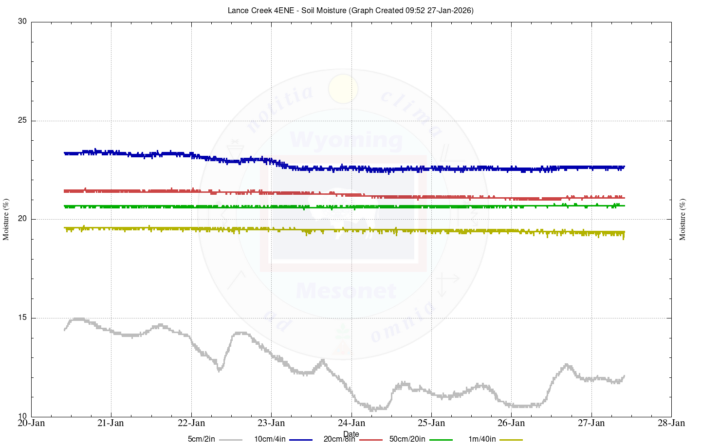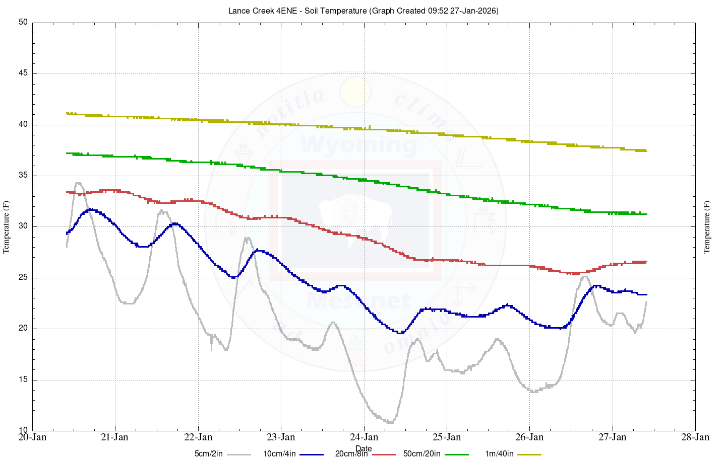 | Date Time (MST) | (F) | (in) | (mph) | (deg) | (mph) | (deg) | (%) | (Mbars) | (w/m^2) | (in) | 5cm | 10cm | 20cm | 50cm | 1m | 5cm | 10cm | 20cm | 50cm | 1m |