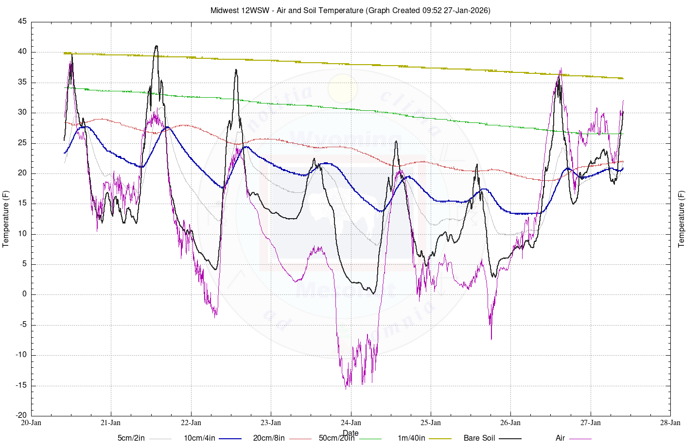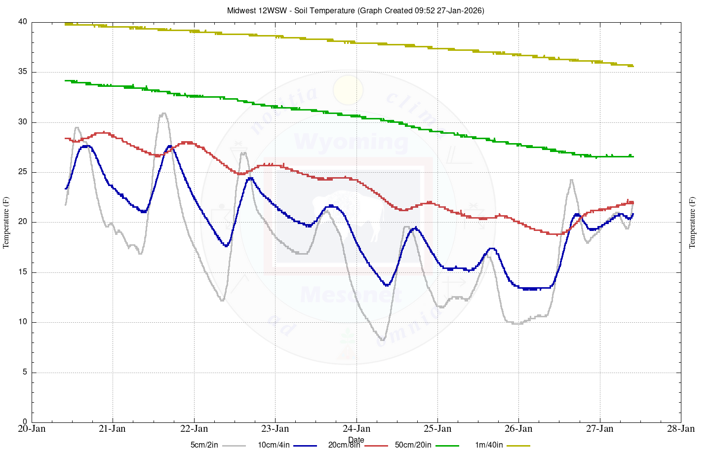 | Date Time (MST) | (F) | (in) | (mph) | (deg) | (mph) | (deg) | (%) | (Mbars) | (w/m^2) | (in) | 5cm | 10cm | 20cm | 50cm | 1m | 5cm | 10cm | 20cm | 50cm | 1m |