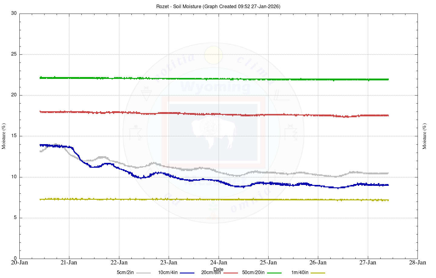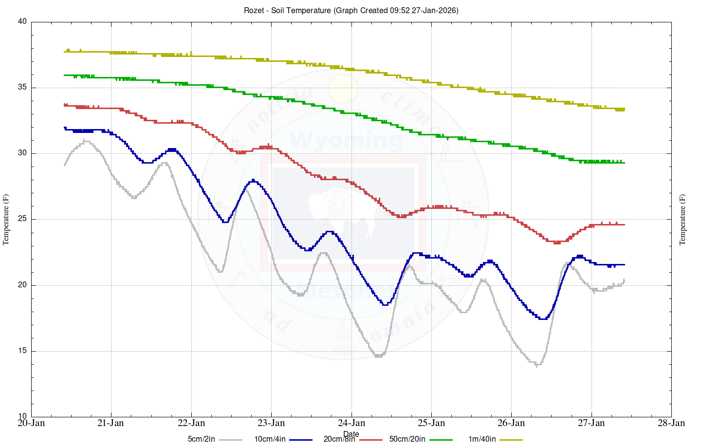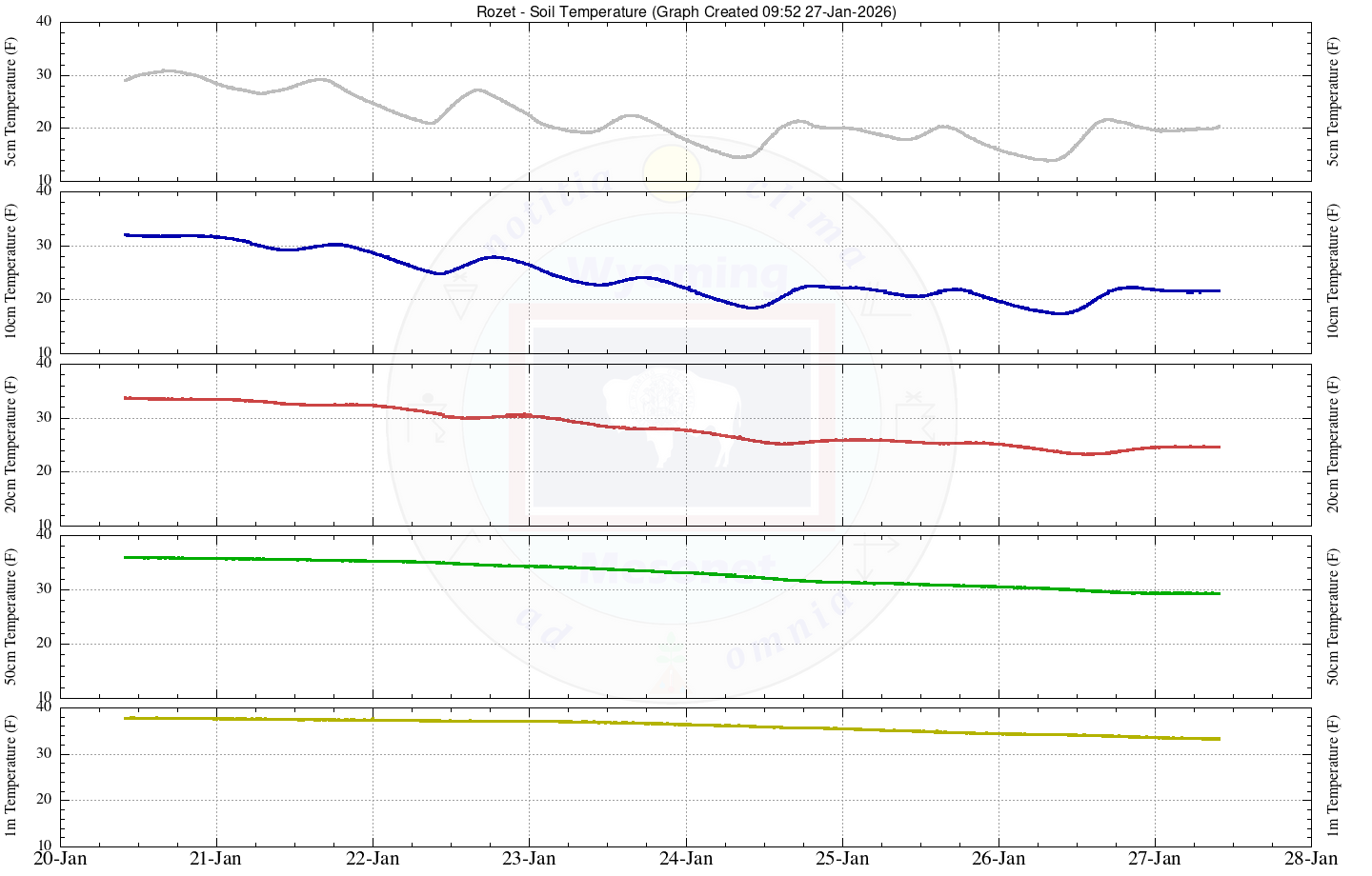 | Date Time (MST) | (F) | (in) | (mph) | (deg) | (mph) | (deg) | (%) | (Mbars) | (w/m^2) | (in) | 5cm | 10cm | 20cm | 50cm | 1m | 5cm | 10cm | 20cm | 50cm | 1m |