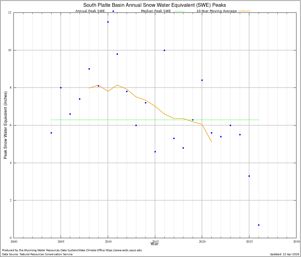 South Platte Annual Peak Snow Water Equivalents