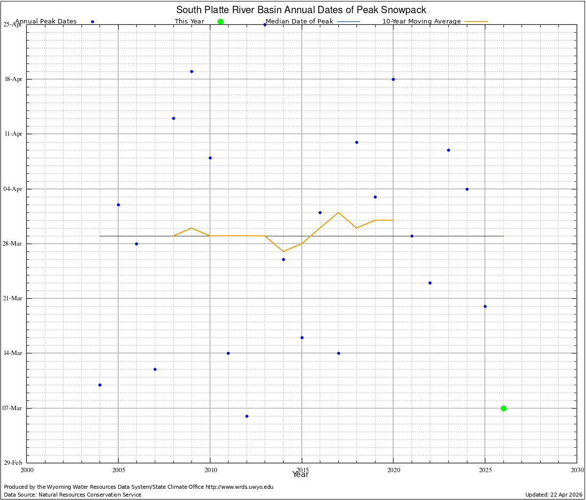 South Platte Annual Peak Snow Water Equivalent Dates