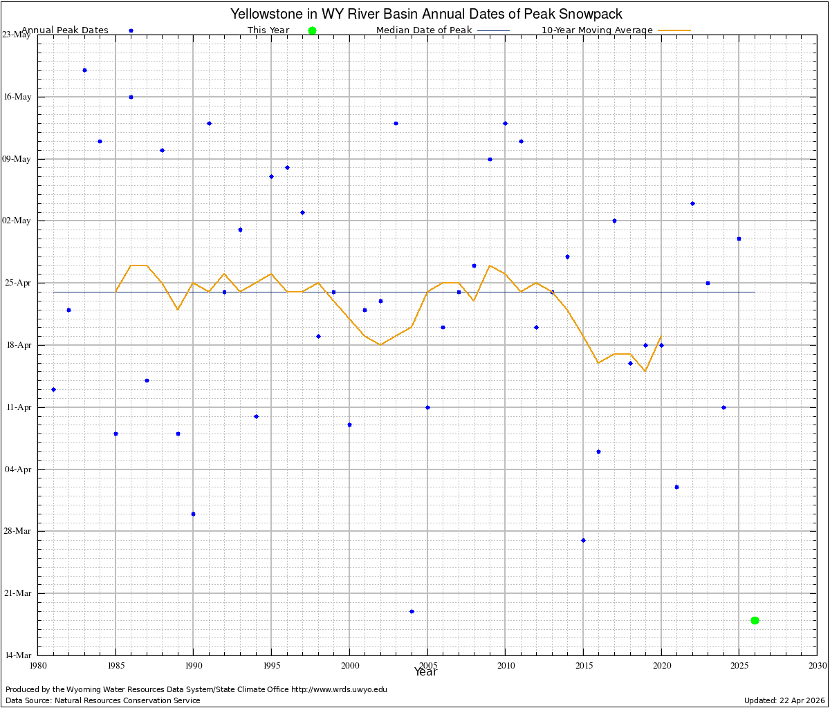 Yellowstone in WY Annual Peak Snow Water Equivalent Dates