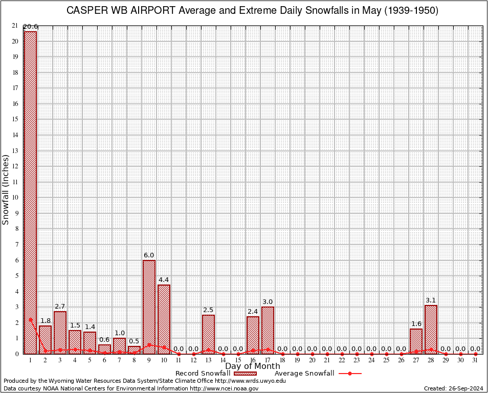 May Average and Extreme Daily Snowfall AMounts (1939-1950)