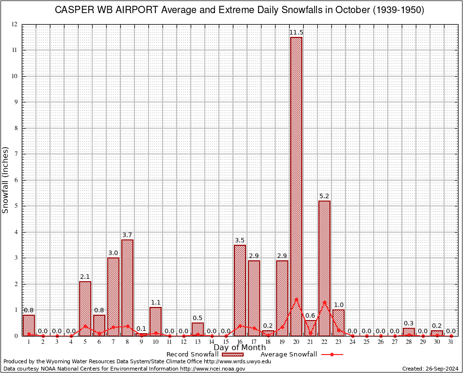 October Average and Extreme Daily Snowfall AMounts (1939-1950)