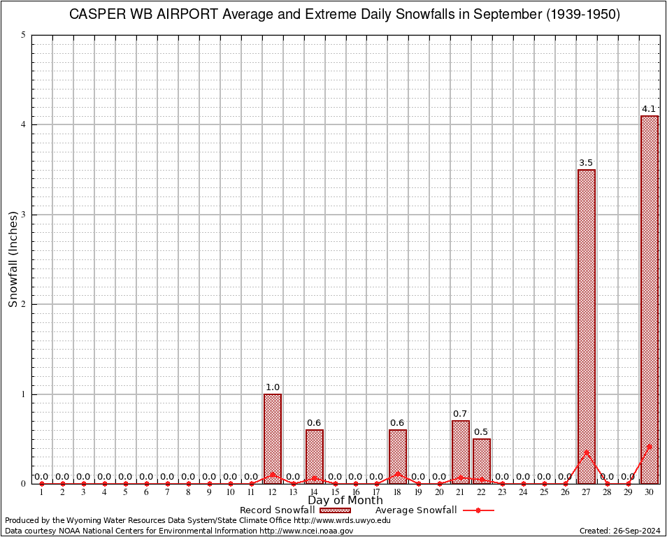 September Average and Extreme Daily Snowfall AMounts (1939-1950)
