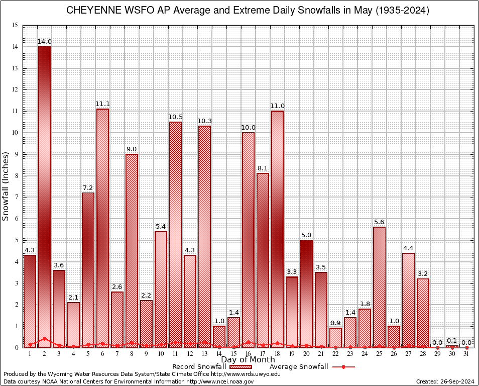 May Average and Extreme Daily Snowfall AMounts (1935-2024)