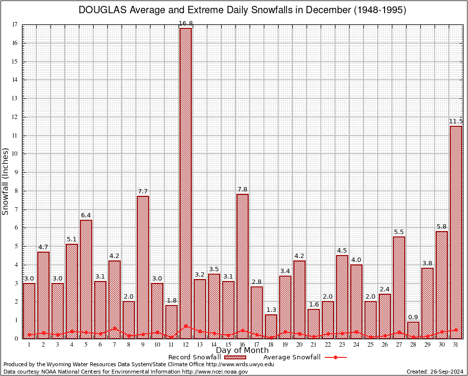 DOUGLAS (24019) December Average and Extreme Daily Snowfall AMounts (1948-1995) To index page for DOUGLAS