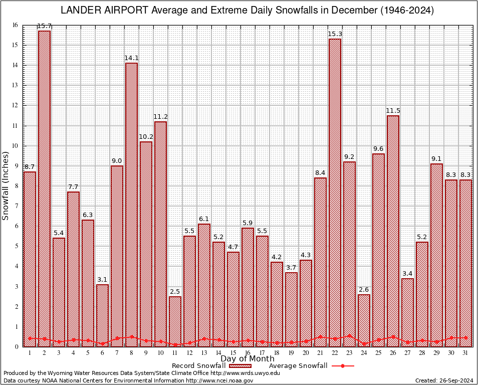 December Average and Extreme Daily Snowfall AMounts (1946-2024)