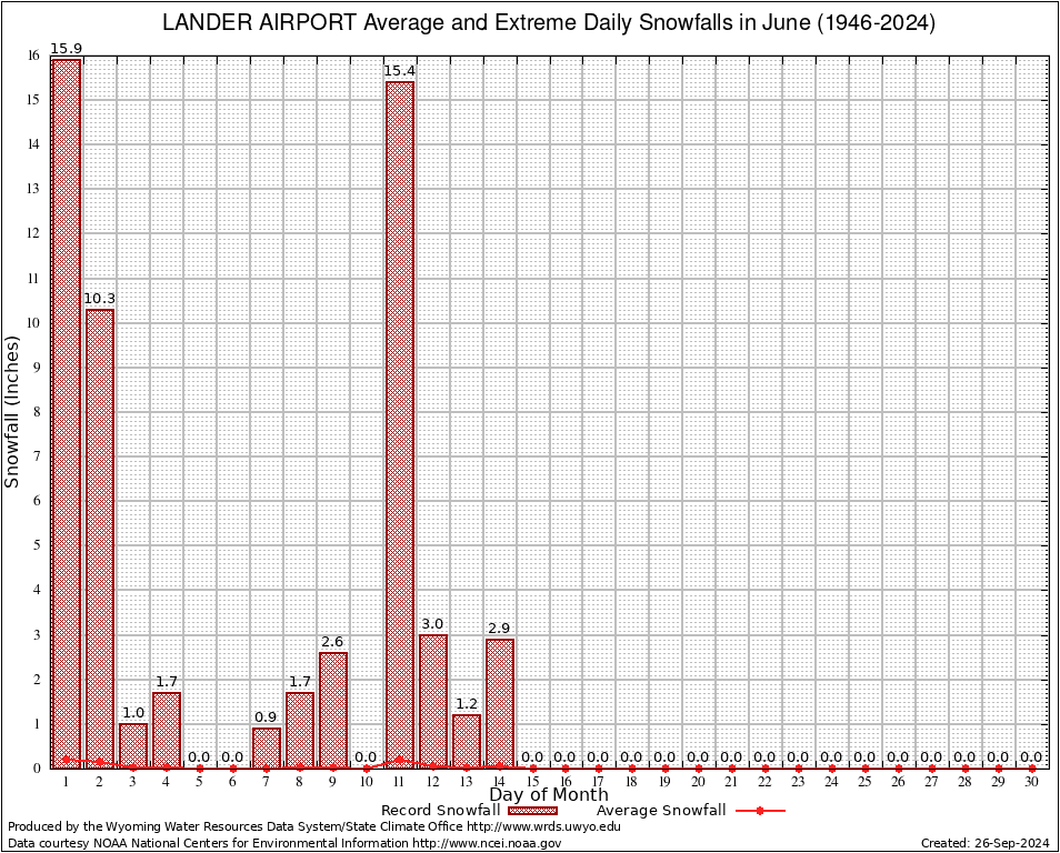 June Average and Extreme Daily Snowfall AMounts (1946-2024)