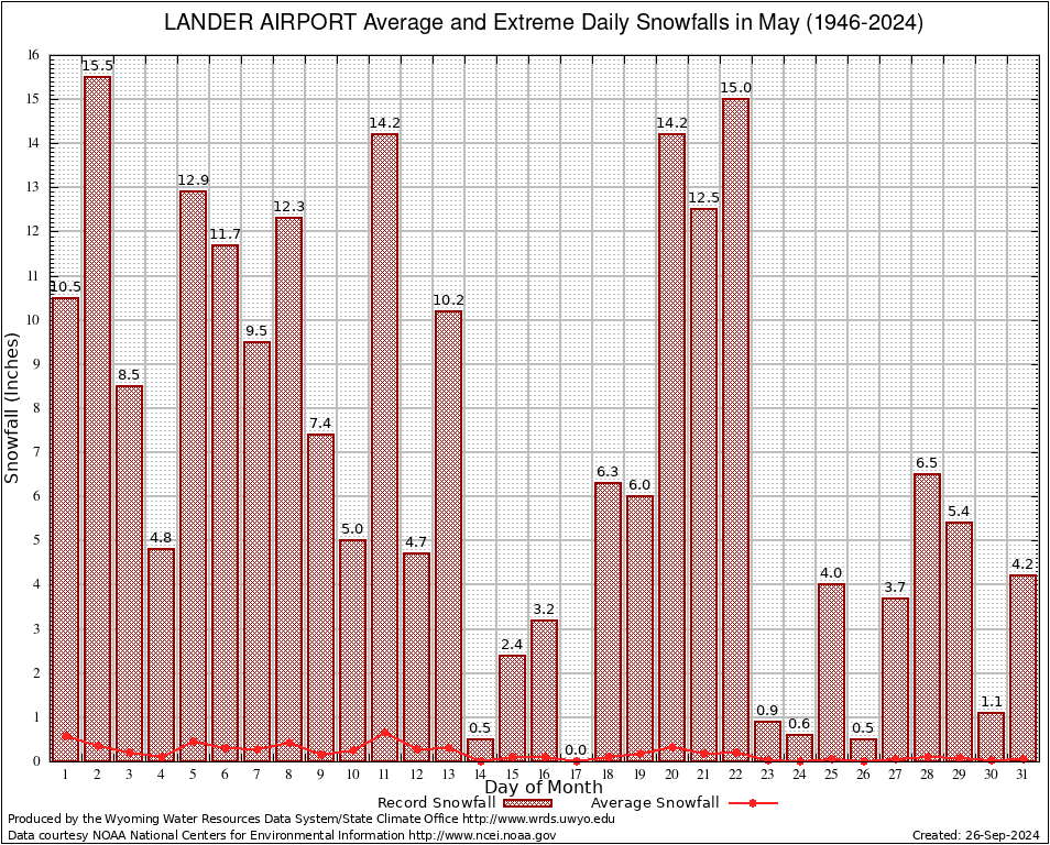 May Average and Extreme Daily Snowfall AMounts (1946-2024)