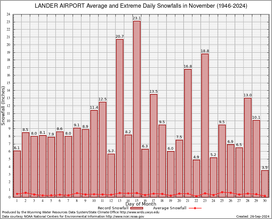 November Average and Extreme Daily Snowfall AMounts (1946-2024)