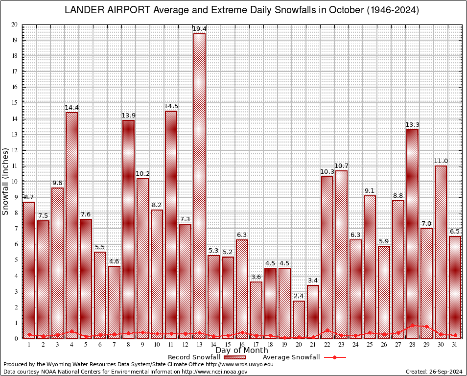 October Average and Extreme Daily Snowfall AMounts (1946-2024)