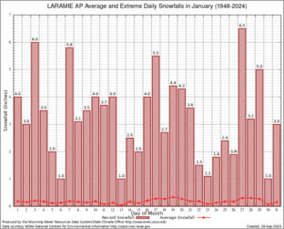 Record Extreme and Average Daily Snowfall (1948-2024)