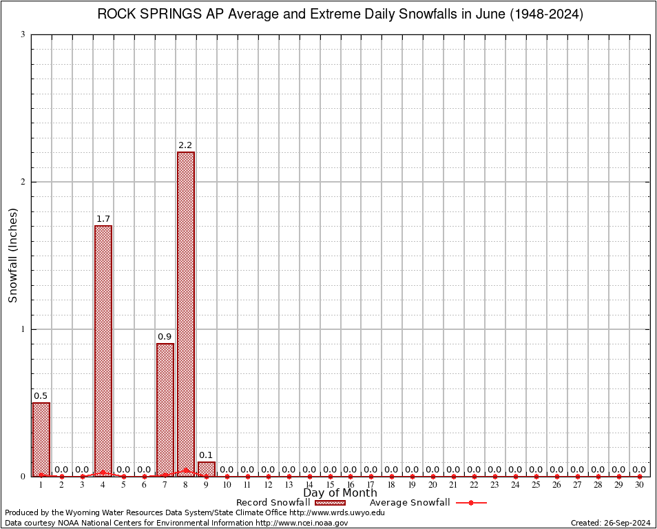 June Average and Extreme Daily Snowfall AMounts (1948-2024)
