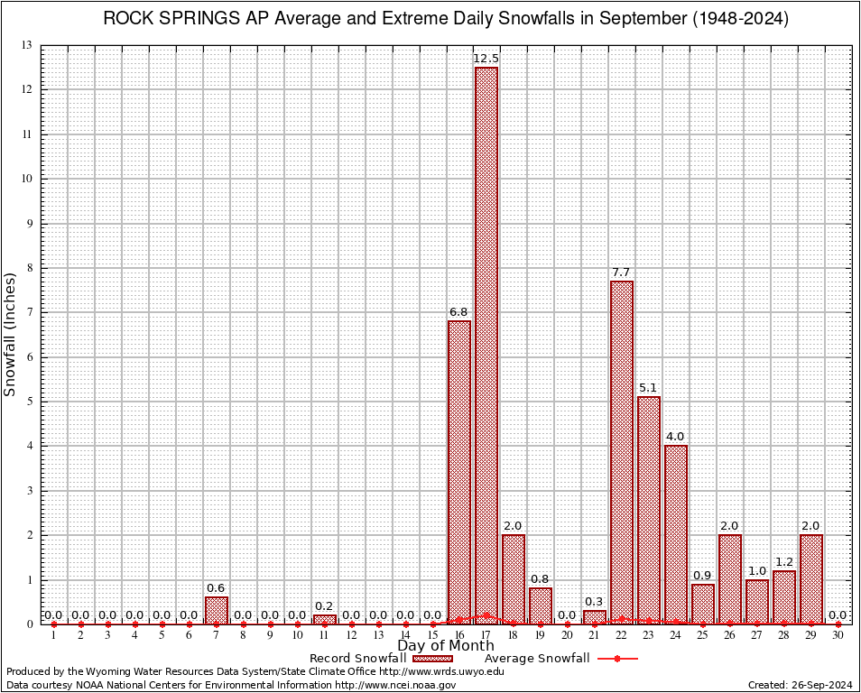 September Average and Extreme Daily Snowfall AMounts (1948-2024)