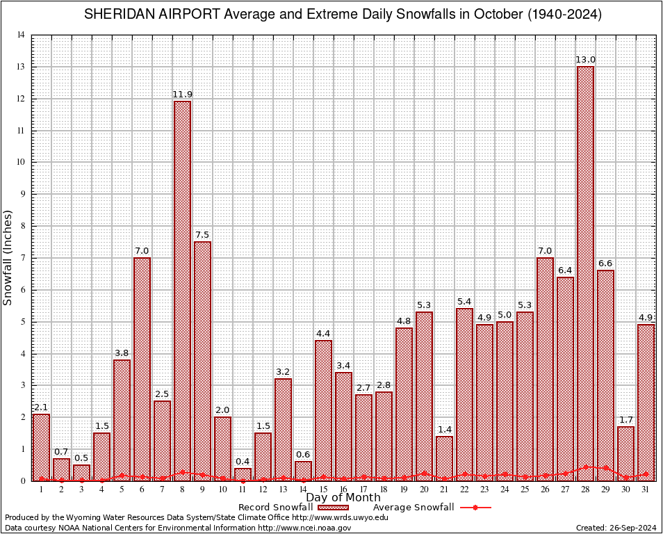 October Average and Extreme Daily Snowfall AMounts (1940-2024)