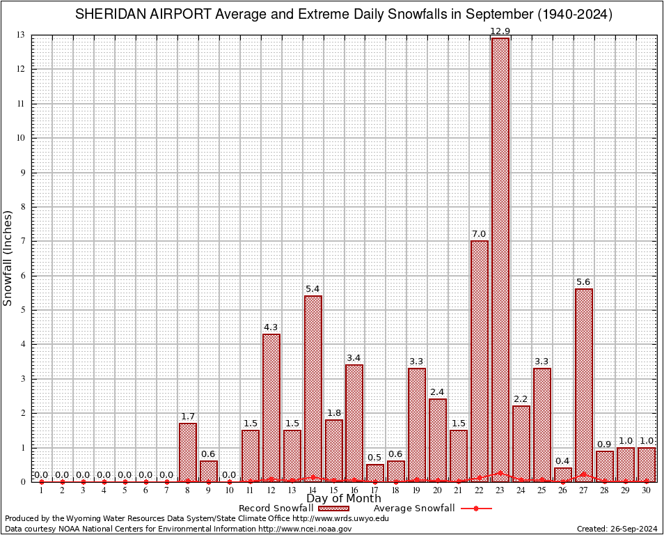 September Average and Extreme Daily Snowfall AMounts (1940-2024)