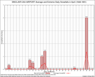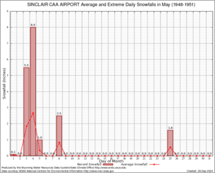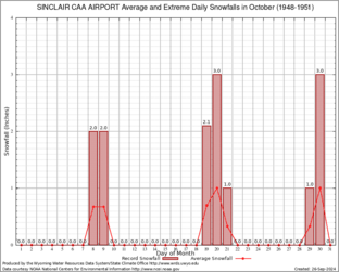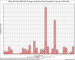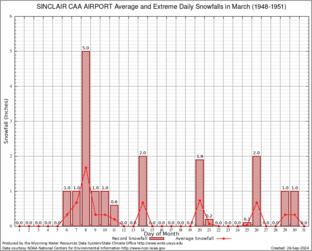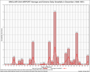 SINCLAIR CAA AIRPORT (24031) Record Extreme and Average Daily Snowfall (1948-1951) See Here for Other Stations