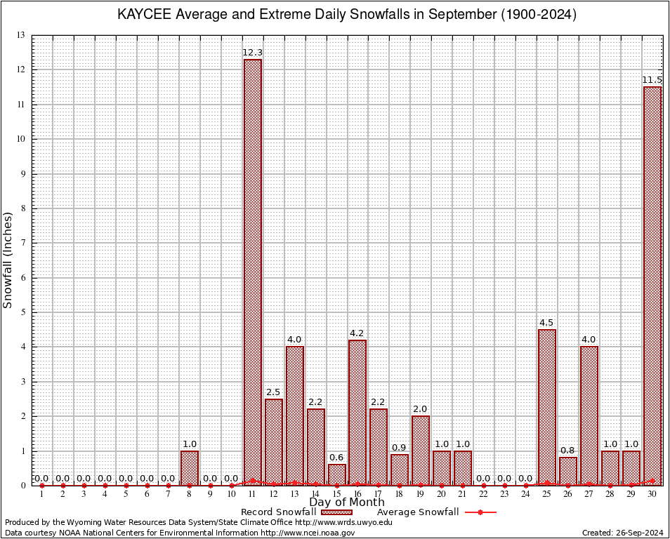 KAYCEE (24049) September Average and Extreme Daily Snowfall AMounts (1900-2024) To index page for KAYCEE