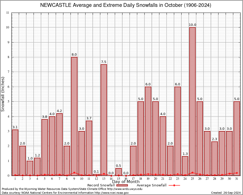 NEWCASTLE (24054) October Average and Extreme Daily Snowfall AMounts (1906-2024) To index page for NEWCASTLE