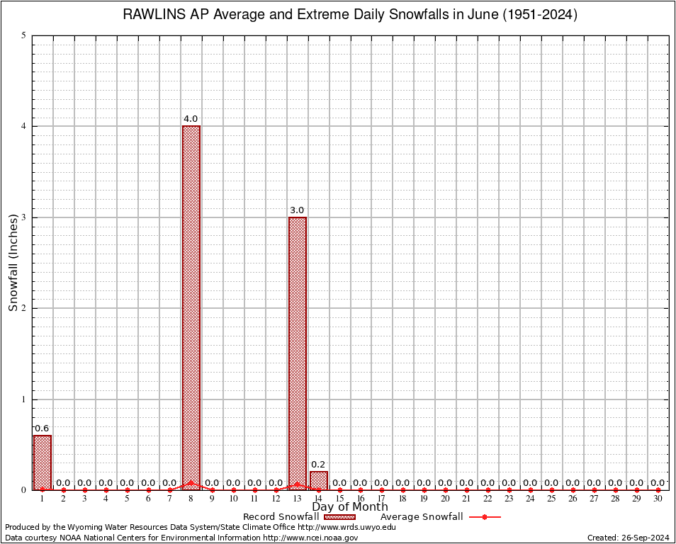 June Average and Extreme Daily Snowfall AMounts (1951-2024)