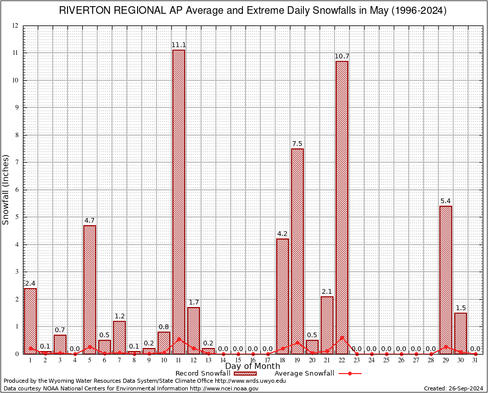 May Average and Extreme Daily Snowfall AMounts (1996-2024)