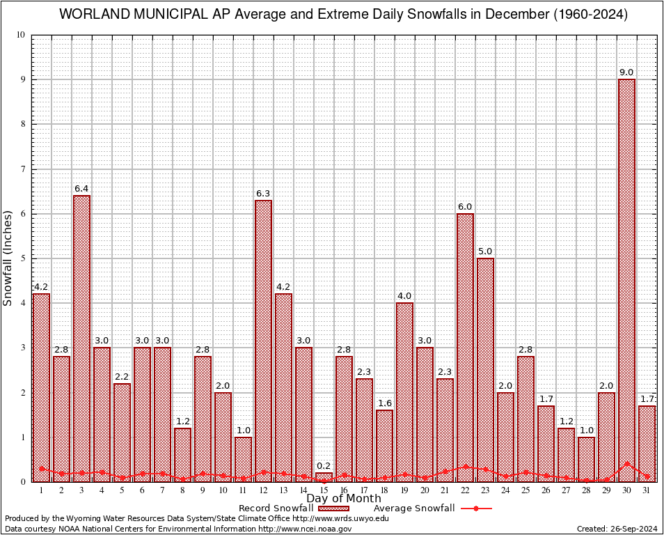December Average and Extreme Daily Snowfall AMounts (1960-2024)