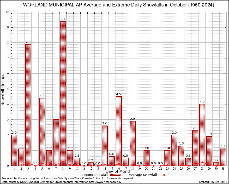 October Average and Extreme Daily Snowfall AMounts (1960-2024)