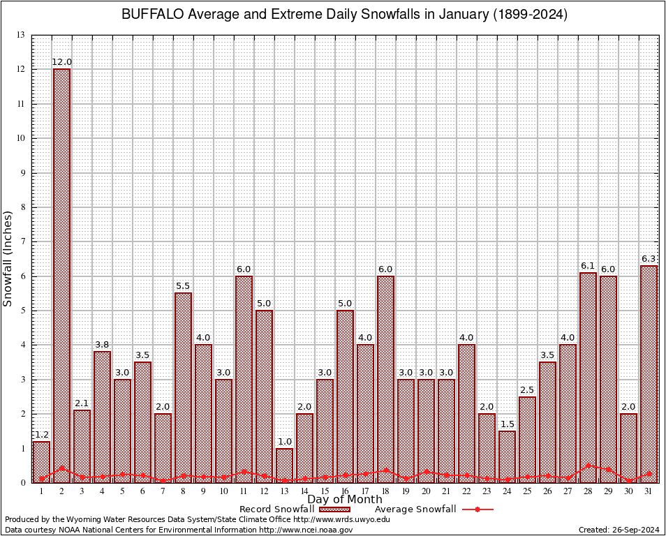 BUFFALO (24066) January Average and Extreme Daily Snowfall AMounts (1899-2024) To index page for BUFFALO