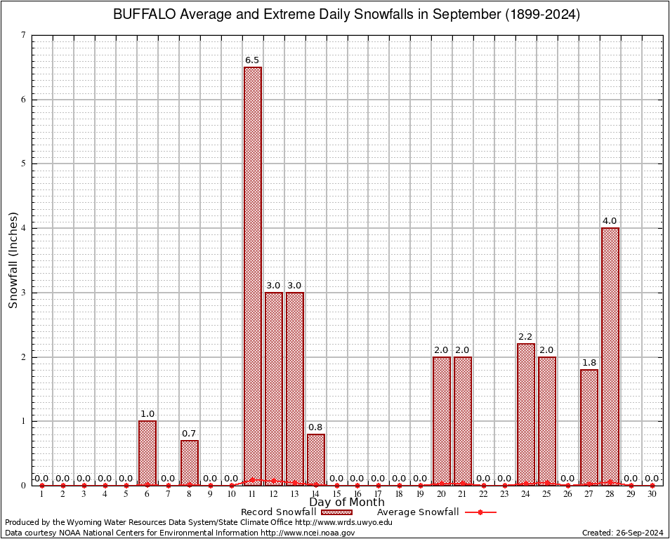 BUFFALO (24066) September Average and Extreme Daily Snowfall AMounts (1899-2024) To index page for BUFFALO