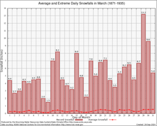 Record Extreme and Average Daily Snowfall (1871-1935)
