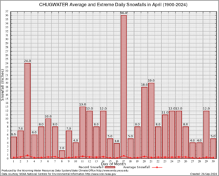 Record Extreme and Average Daily Snowfall (1900-2024)