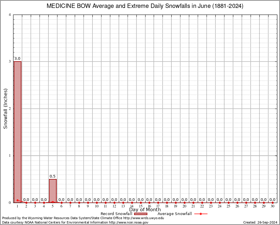 June Average and Extreme Daily Snowfall AMounts (1881-2024)