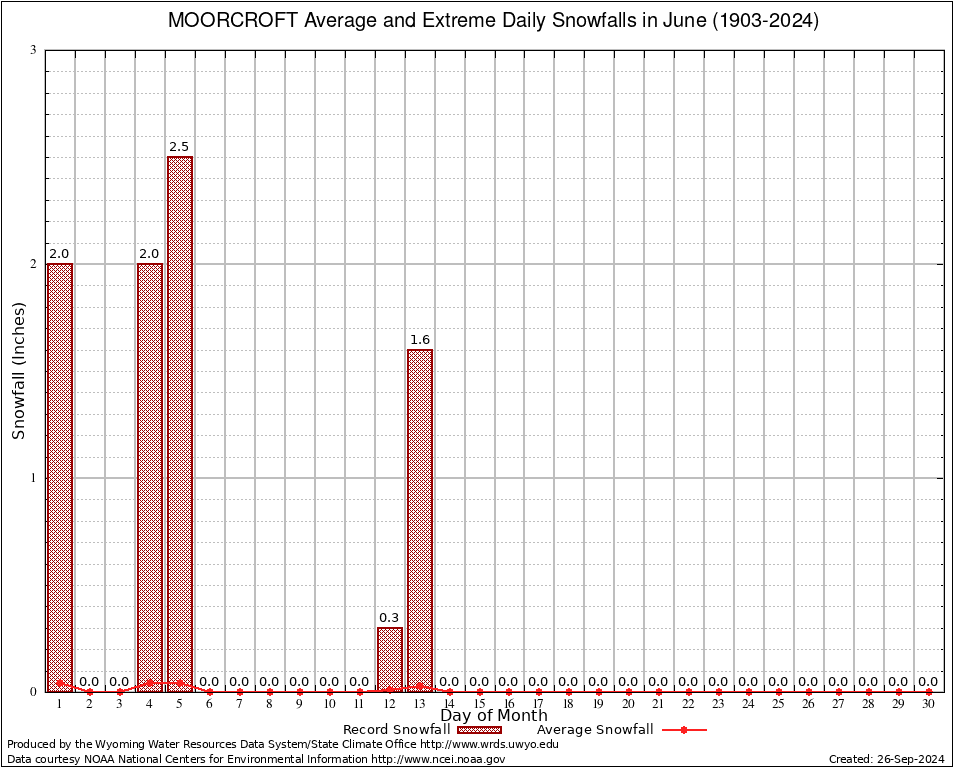 June Average and Extreme Daily Snowfall AMounts (1903-2024)