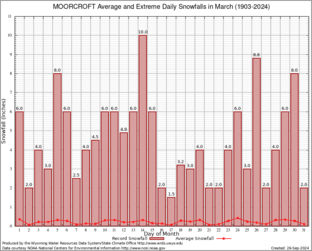 Record Extreme and Average Daily Snowfall (1903-2024)