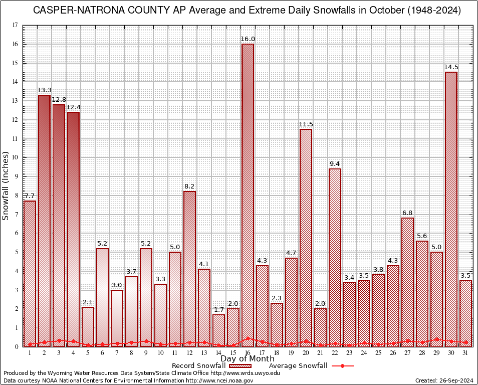 October Average and Extreme Daily Snowfall AMounts (1948-2024)