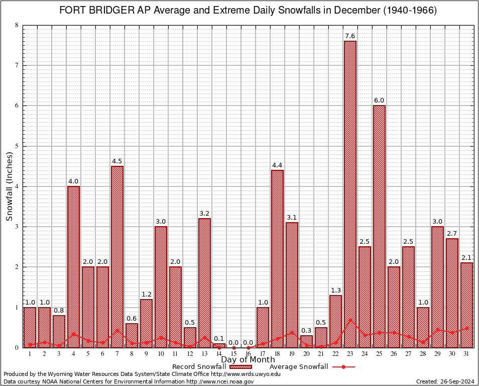 December Average and Extreme Daily Snowfall AMounts (1940-1966)