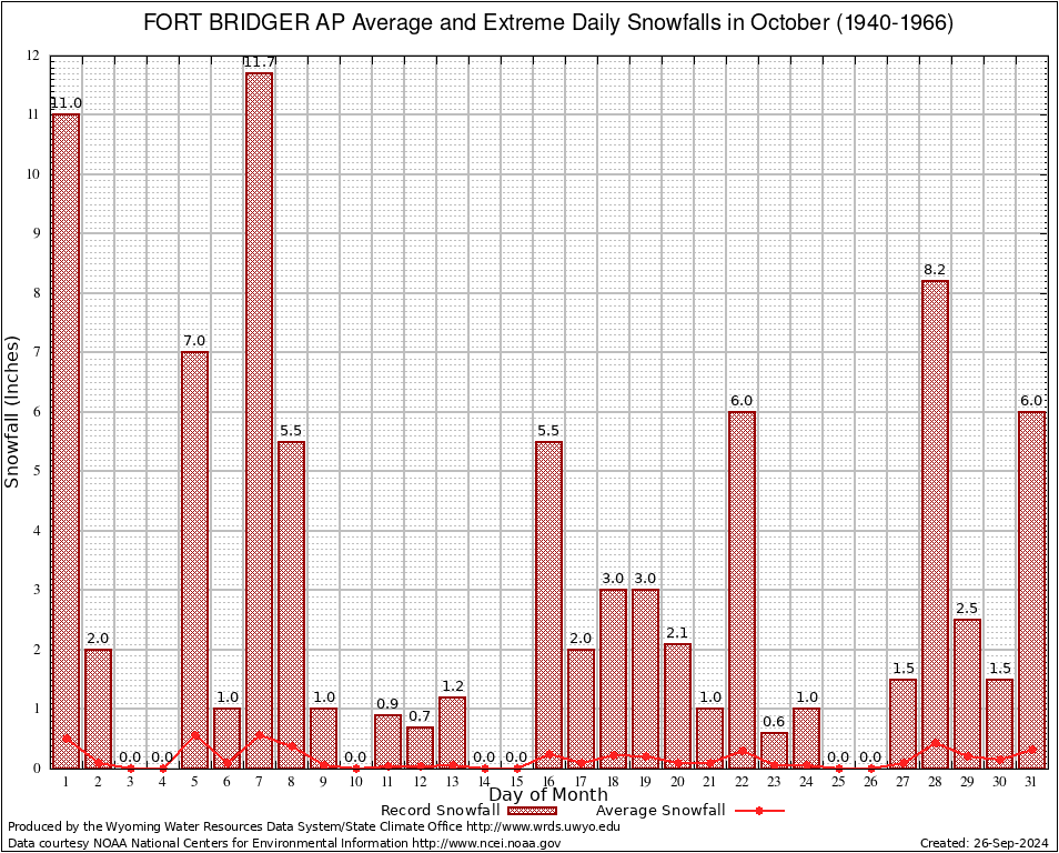 October Average and Extreme Daily Snowfall AMounts (1940-1966)