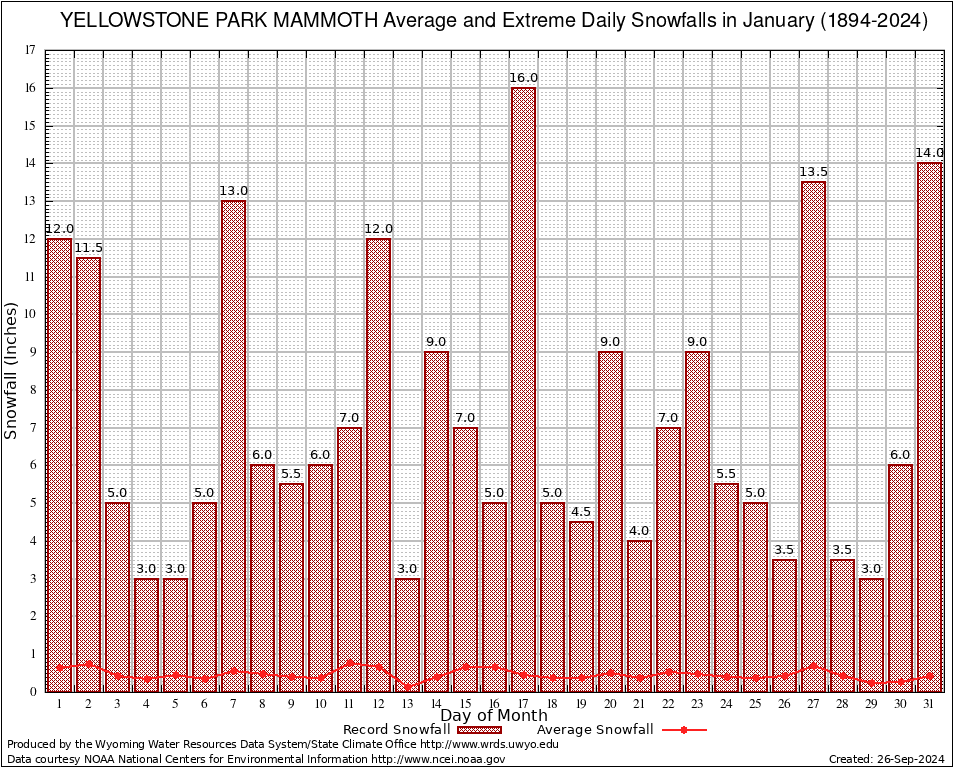 January Average and Extreme Daily Snowfall AMounts (1894-2024)