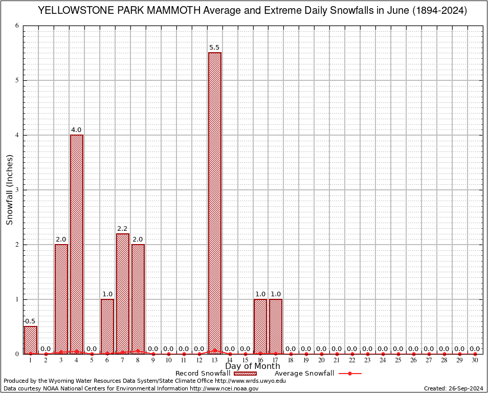 June Average and Extreme Daily Snowfall AMounts (1894-2024)