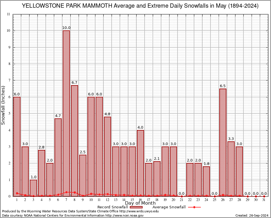 May Average and Extreme Daily Snowfall AMounts (1894-2024)