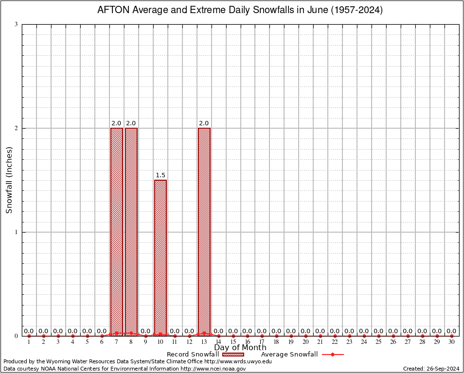 AFTON (480027) June Average and Extreme Daily Snowfall AMounts (1957-2024) To index page for AFTON