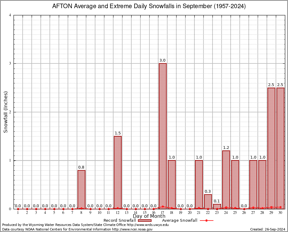 AFTON (480027) September Average and Extreme Daily Snowfall AMounts (1957-2024) To index page for AFTON