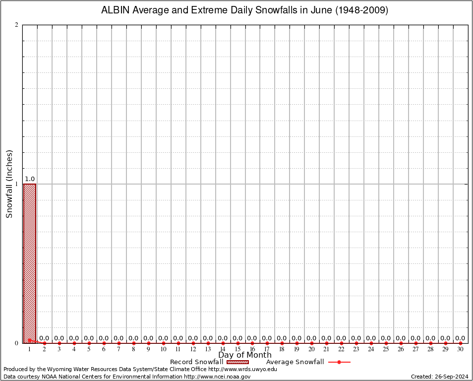 ALBIN (480080) June Average and Extreme Daily Snowfall AMounts (1948-2009) To index page for ALBIN
