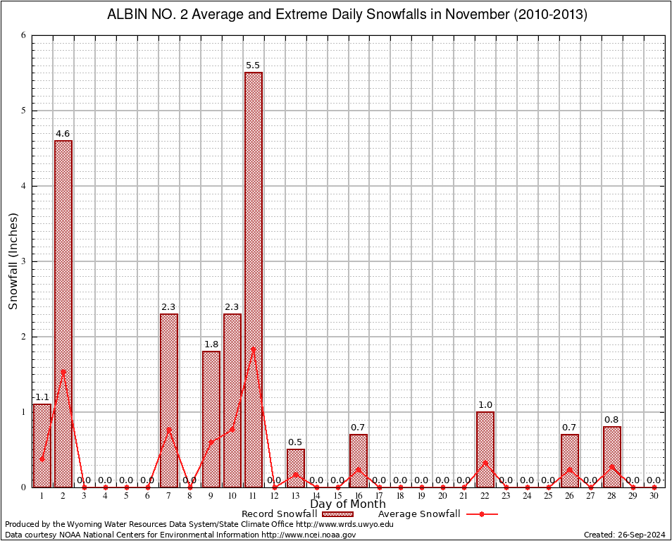 November Average and Extreme Daily Snowfall AMounts (2010-2013)