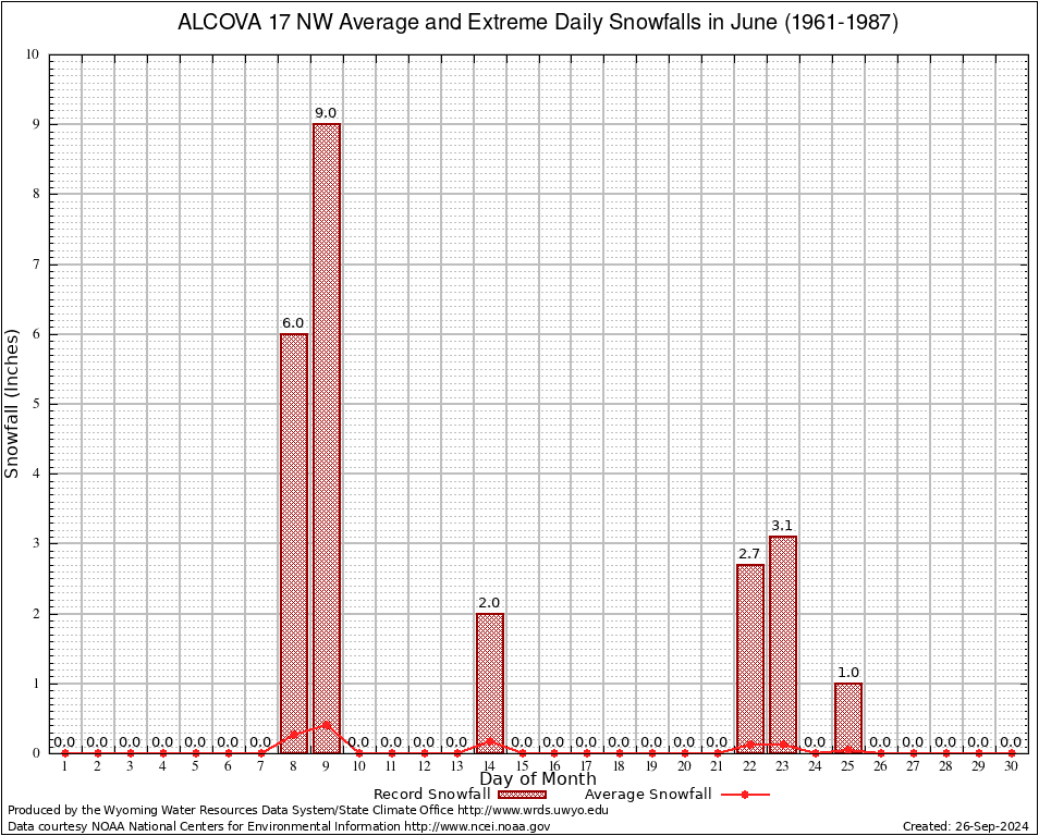 June Average and Extreme Daily Snowfall AMounts (1961-1987)