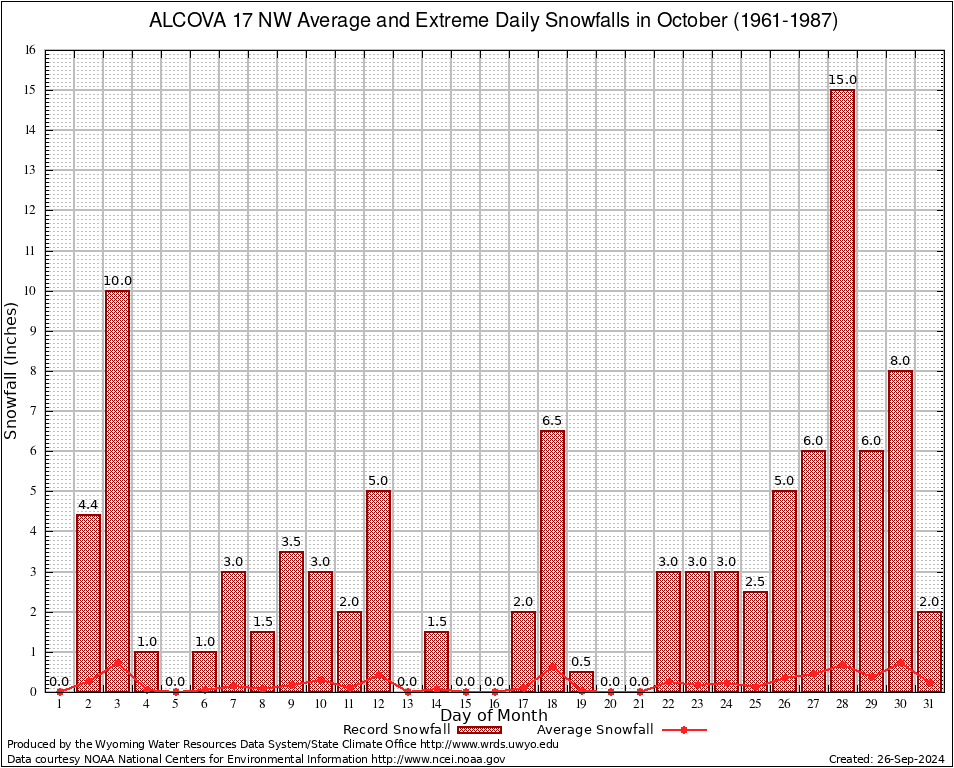 October Average and Extreme Daily Snowfall AMounts (1961-1987)