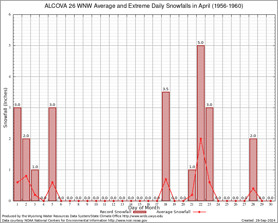 April Average and Extreme Daily Snowfall AMounts (1956-1960)